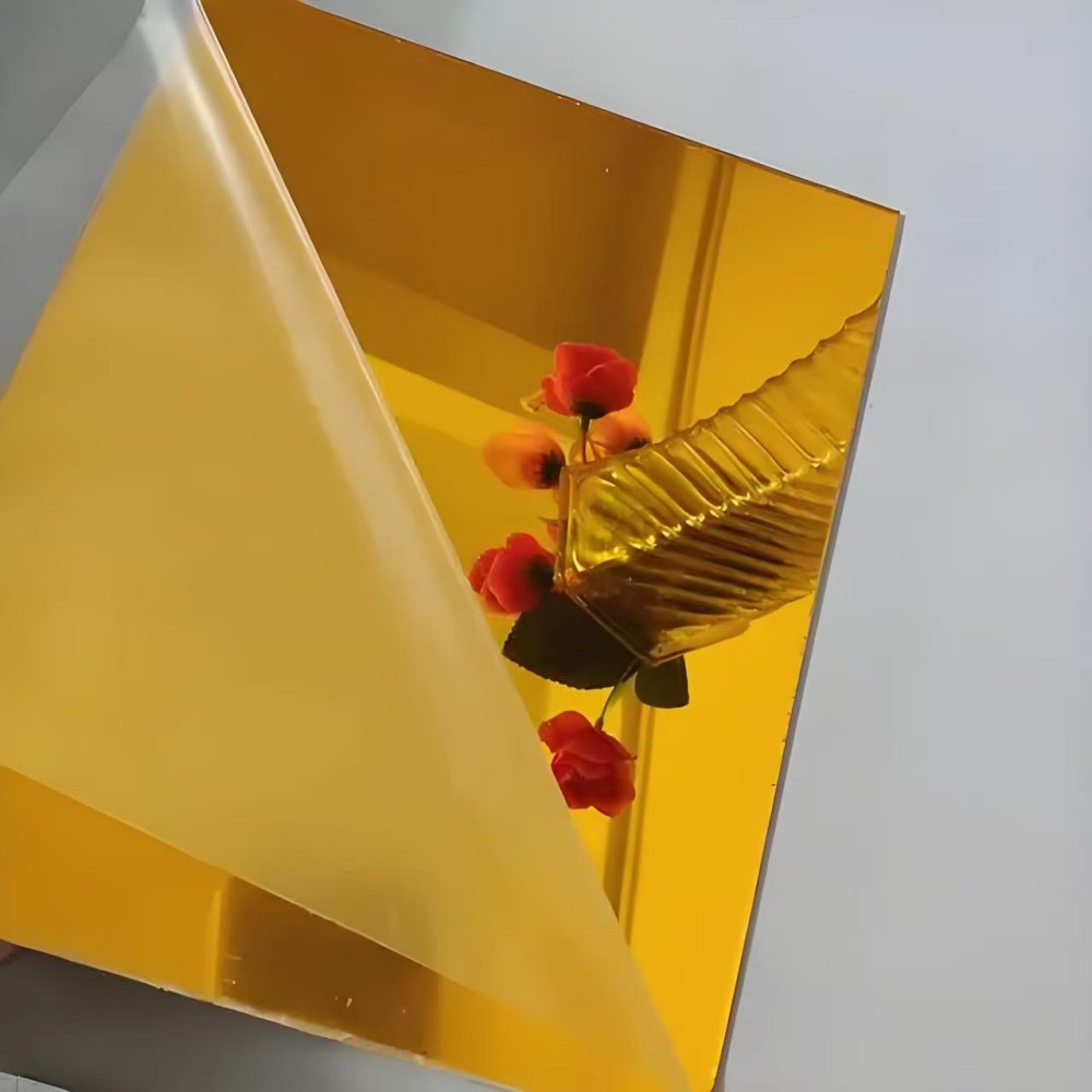 Zlaté zrkadlové akrylové dosky sú špičkovým dekoratívnym materiálom, ktorý kombinuje luxusný pocit kovu s ľahkými vlastnosťami akrylu. Dosiahnutie zrkadlového efektu s vysokou odrazivosťou je dosiahnuté technológiou povrchovej úpravy. Zlaté zrkadlové akrylátové dosky sú ideálnou voľbou na vytvorenie vizuálnych ohniskových bodov a zvýšenie celkovej kvality priestoru v modernom dizajne a komerčných aplikáciách.